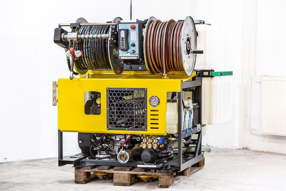 The IBOS Hydrojet is the most used type of high pressure equipment, especially popular for its favourable price/performance ratio. For this year it has been significantly upgraded – among other things, it has received a more powerful drive unit and a high-pressure pump. A more compact design and integrated forklift skids contribute to easier handling and assembly. The high-pressure winch has electric controls. The equipment is designed for cleaning pipes DN 50-300 mm, in the basic version it has tanks for 2 x 400 water.