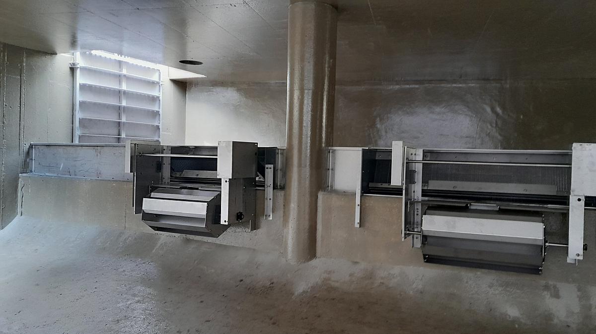 Automatically wiped GIWA screens, driven by water wheel or electric motor. The screen pitch is 7 mm. The scrapes are pulled into the inflow sewage by the screens.