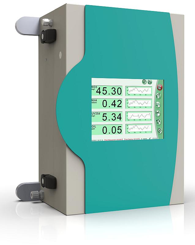 It is based on a high-resolution UV-visible spectrograph. It simultaneously monitors many different parameters for wastewater treatment plants or river monitoring stations with excellent stability and low costs. The same spectrograph can measure organics, nitrates, color, turbidity, phosphates, ammonia and hydrogen sulfide. The fluorescence module measures aromatic hydrocarbons (PAHs) and the infrared laser diode nephelometric turbidity. The patented flow cell allows very high solids content.